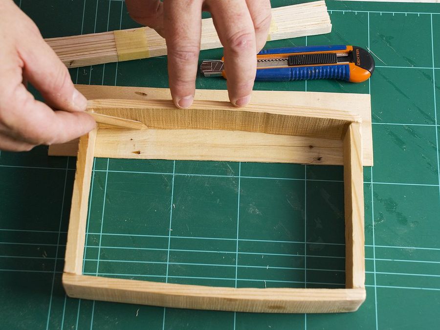 Esta sencilla colocación de espigas o tubillones refuerza considerablemente el marco.