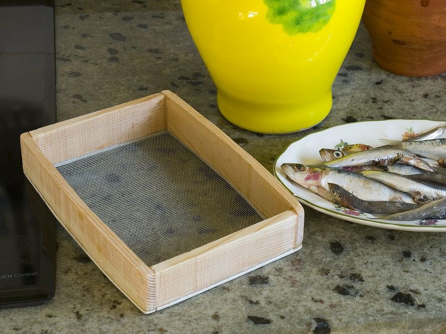 Adaptaremos las medidas del harinero a las variedades más habituales en nuestra cocina; el que hemos fabricado sirve para sardinas, boquerones, salmonetes y otros selectos frutos de la mar. Veamos en detalle la tarea.