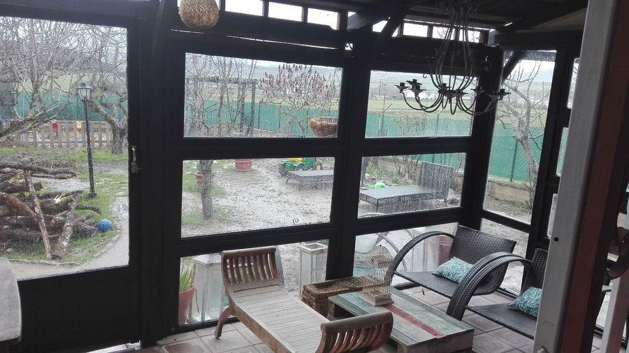 ahora tenemos una zona de estar exterior que los días soleados de invierno se calienta muchísimo y ayuda a calentar el comedor sin necesidad del fuego o la estufa. En la zona norte de España ,donde vivimos nosotros, es el lugar ideal .....