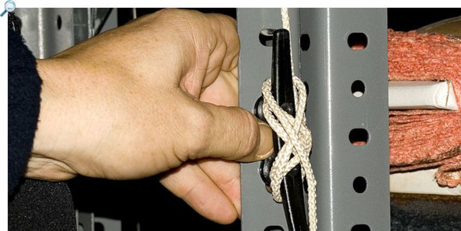 Fijamos esta cornamusa de velero en la estantería metálica, y de esa forma tan sencilla podremos amarrar nuestro altillo a la altura deseada, sin que la cuerda estorbe.