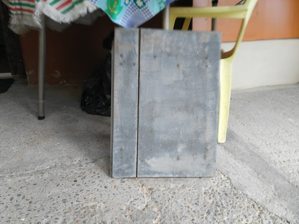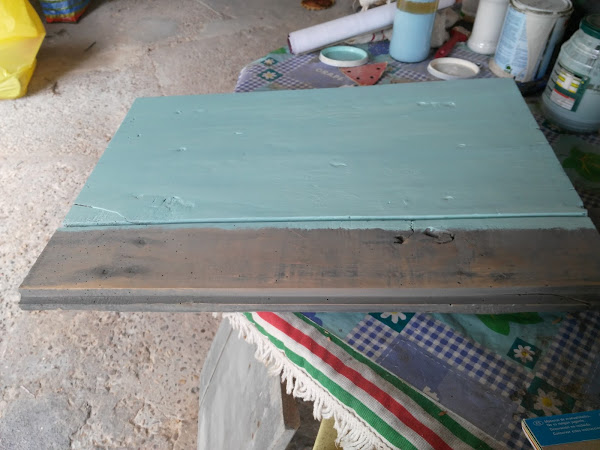 Después de haberlas limpiado a conciencia, les dí dos manos de pintura plástica en color turquesa. Una vez seca la pintura, le pasé la lijadora delta por todas partes, hasta conseguir el decapado que me gustaba.