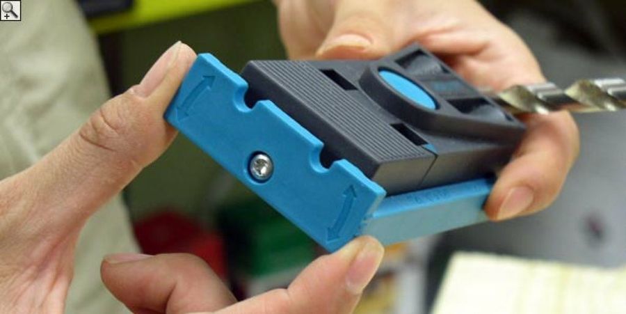 Medimos la broca en la pieza multiusos que nos proporciona el kit. La medida será la que indica el principio de la parte ancha de la broca.