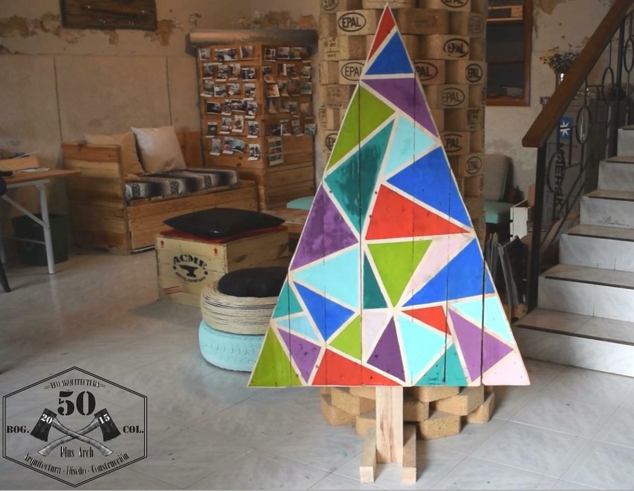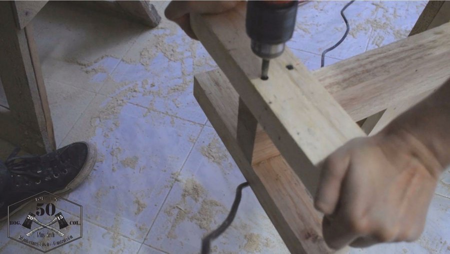 5. Para hacer la base del árbol utiliza maderas gruesas y atornilla 1 vertical y dos horizontalmente a los lados.