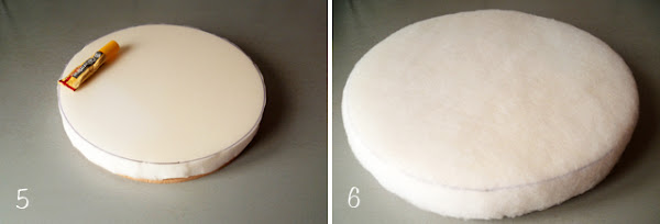 Usamos pegamento de tela y pegamos la guata sobre la madera.