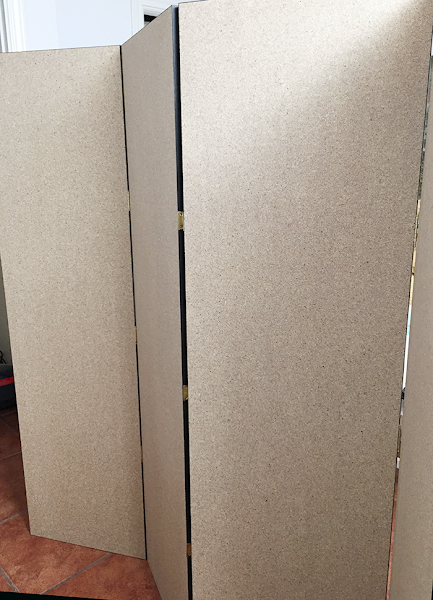 Yo encargué los tableros de 45cm de ancho calculando que el biombo, un poco recogido, se quedaría de 165 cm de largo para una cama de 150cm.