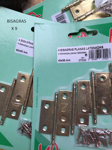 Las bisagras las compré en color oro, pero por supuesto las hay en otros acabados.