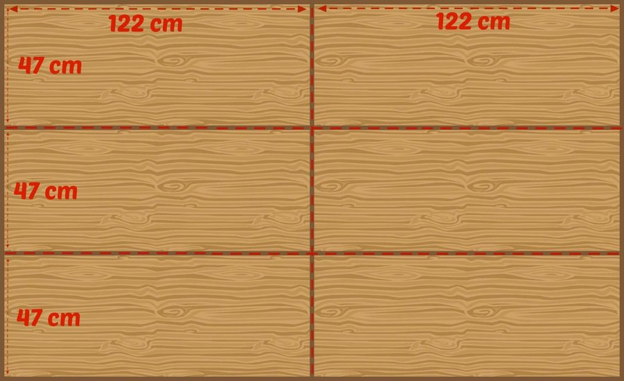 Después coge dos de las tablas de 122cm x 47cm (48in x16in) y corta el largo de nuevo a 107cm (47in).