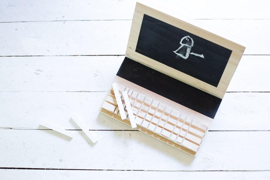 Con pegatinas de pizarra, hice el logo de Apple y la verdad que el ordenador portátil para niños, quedó de lo más original.