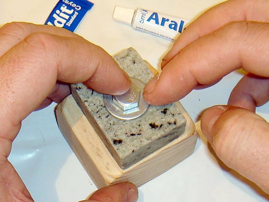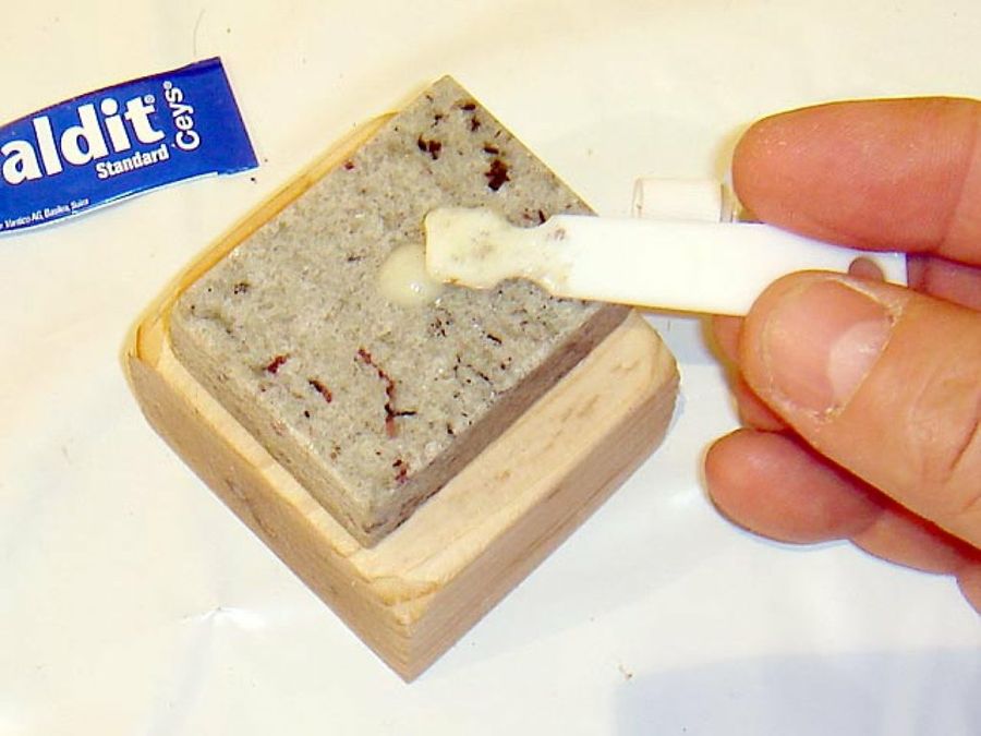 A fin de fijarla sobre el granito, ahora utilizaremos una resina epoxídica, adhesivo de dureza extrema, idóneo para pegar metales.
