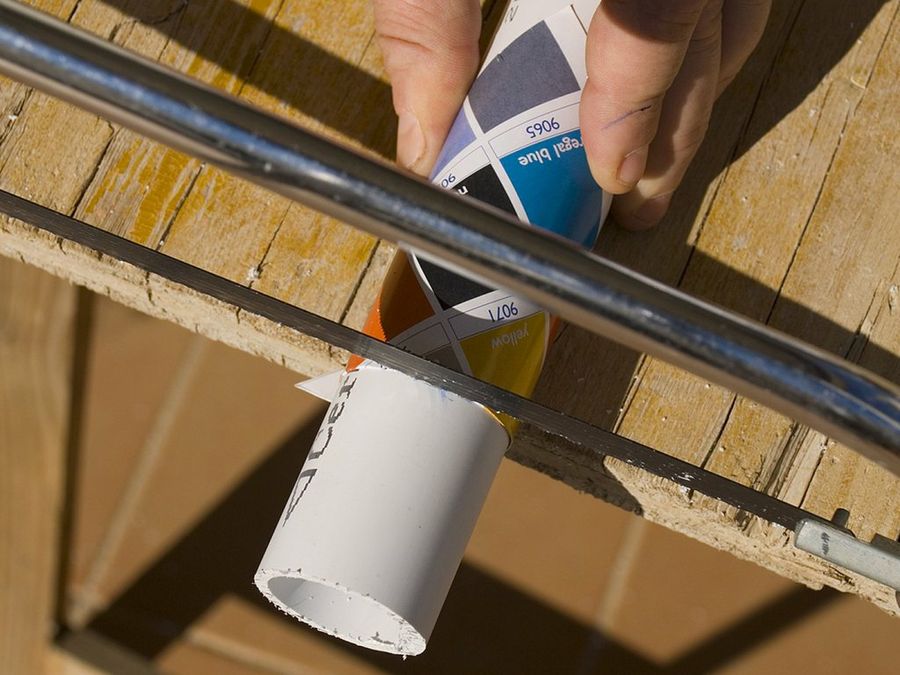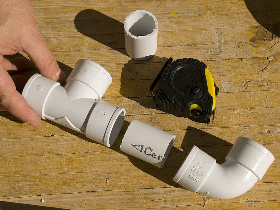 Tubos, codos y empalmes, y una sierra para metal: ya tenemos todo lo necesario para montar en poco tiempo el teatrillo. Los cortes rectos se hacen fácilmente gracias al truco de la hoja de papel, y antes de ensamblar las piezas eliminaremos las virutas con un rápido lijado.
