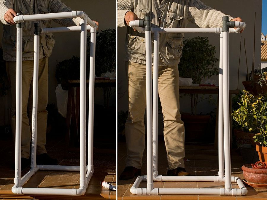 El montaje de la base con los tubos, los codos y las piezas en T queda de esta manera.