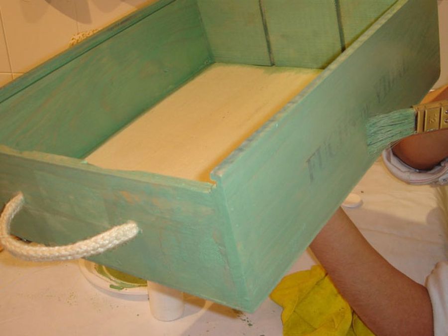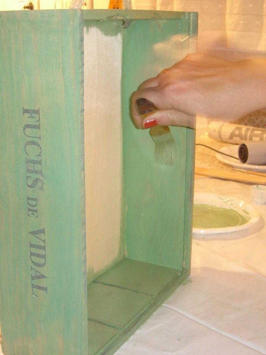 Con el mismo color damos por la parte interior de la caja, sólo las paredes porque el fondo irá después cubierto con el forro de plástico.