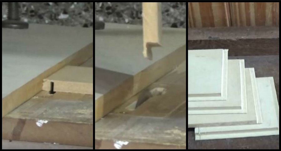 Comienza haciendo un rebaje lateral en los cuatro lados de 7mm, para dejar 2mm de pestaña. Usa la sierra circular. Este proceso deberás repetirlo en tres laterales contiguos de cada cuadrado en forma de 'U'.