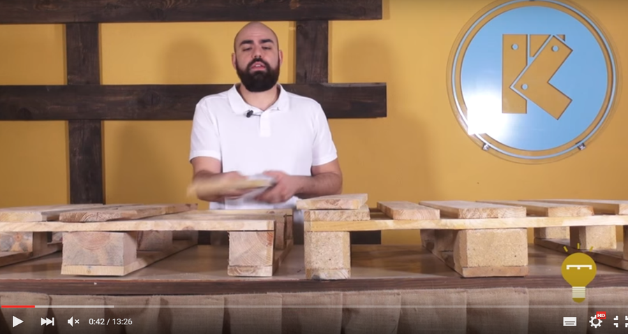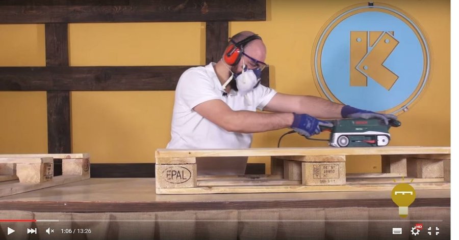 2. Una vez desmontado procederemos a lijar bien el palet. Usaremos para ello la lijadora de banda, amoladora con disco mil hojas y la lijadora orbital combinando tela esmeril con lija para madera.