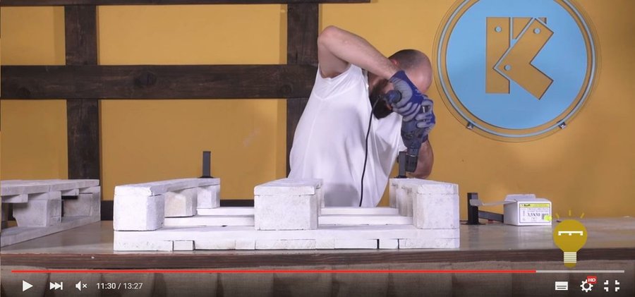 8. Llegados a este punto sólo nos quedará unir ambos palets. Para ello usaremos tornillos de 3.5 x 30 para madera, haciendo un par de agujeros en la parte fronal de nuestra mesa, entre los huecos.