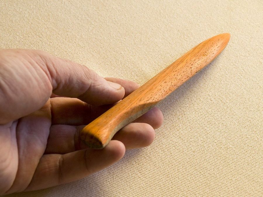 La plegadera se llama en inglés bone folder, sea del material que sea, porque tradicionalmente se fabricaba con hueso (bone). Hay aficionados a la encuadernación que se fabrican sus propias plegaderas, y lo hacen con madera, otro material que da buenos resultados. Así lo hemos realizado también nosotros, aprovechando el trabajo para investigar el montaje de objetos con dos maderas diferentes, una labor muy gratificante. !Vamos a verla en detalle!