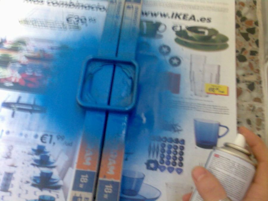 Dejamos secar 2 minutos, damos otra pasada, luego otros dos minutos de secado y otra pasada, siempre con muy poca pintura. Cada mano lo cubrirá más y más sin chorrear, quedará perfecto. Dejar secar unas 2 horas, para evitar marcas de huellas dactilares con el manejo.