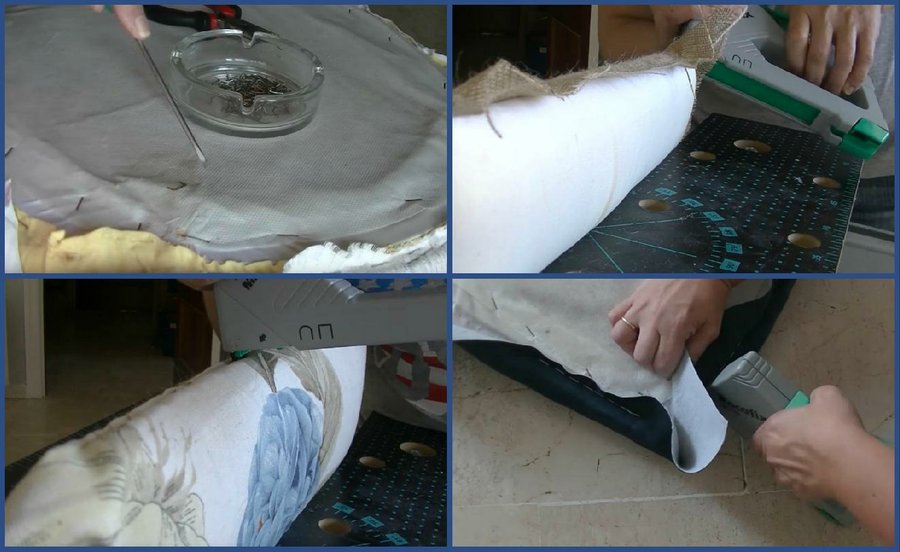 Pon las grapas que necesites. Golpea todas con un martillo para fijarlas mejor y asegúrarte de que no quedan sueltas. Es muy importante que la tela quede sin arrugas.