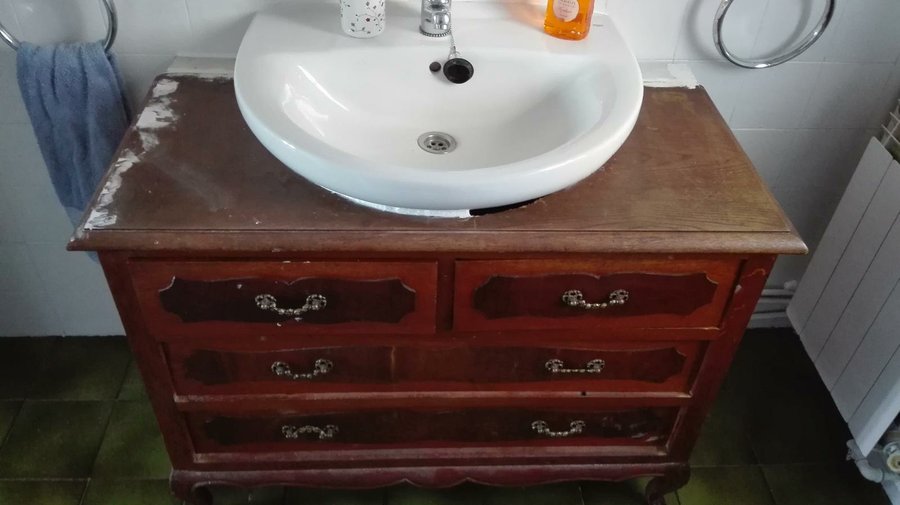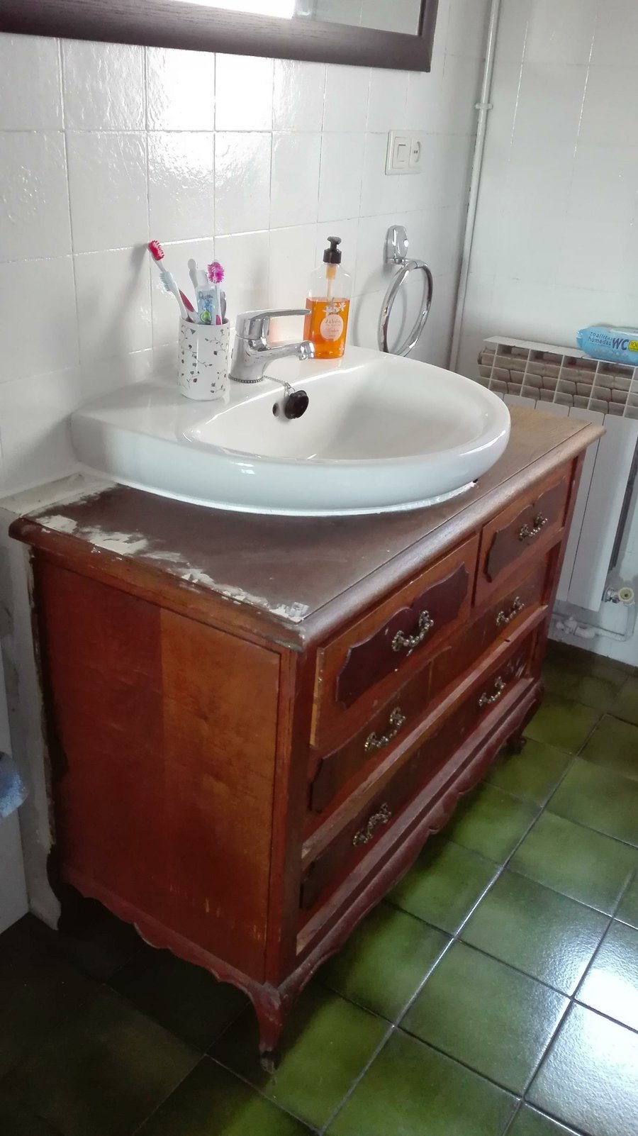 Cuando compramos la casa, esta cómoda estaba en una habitación, le estuve buscando un sitio hasta que al fin pensé en el baño.