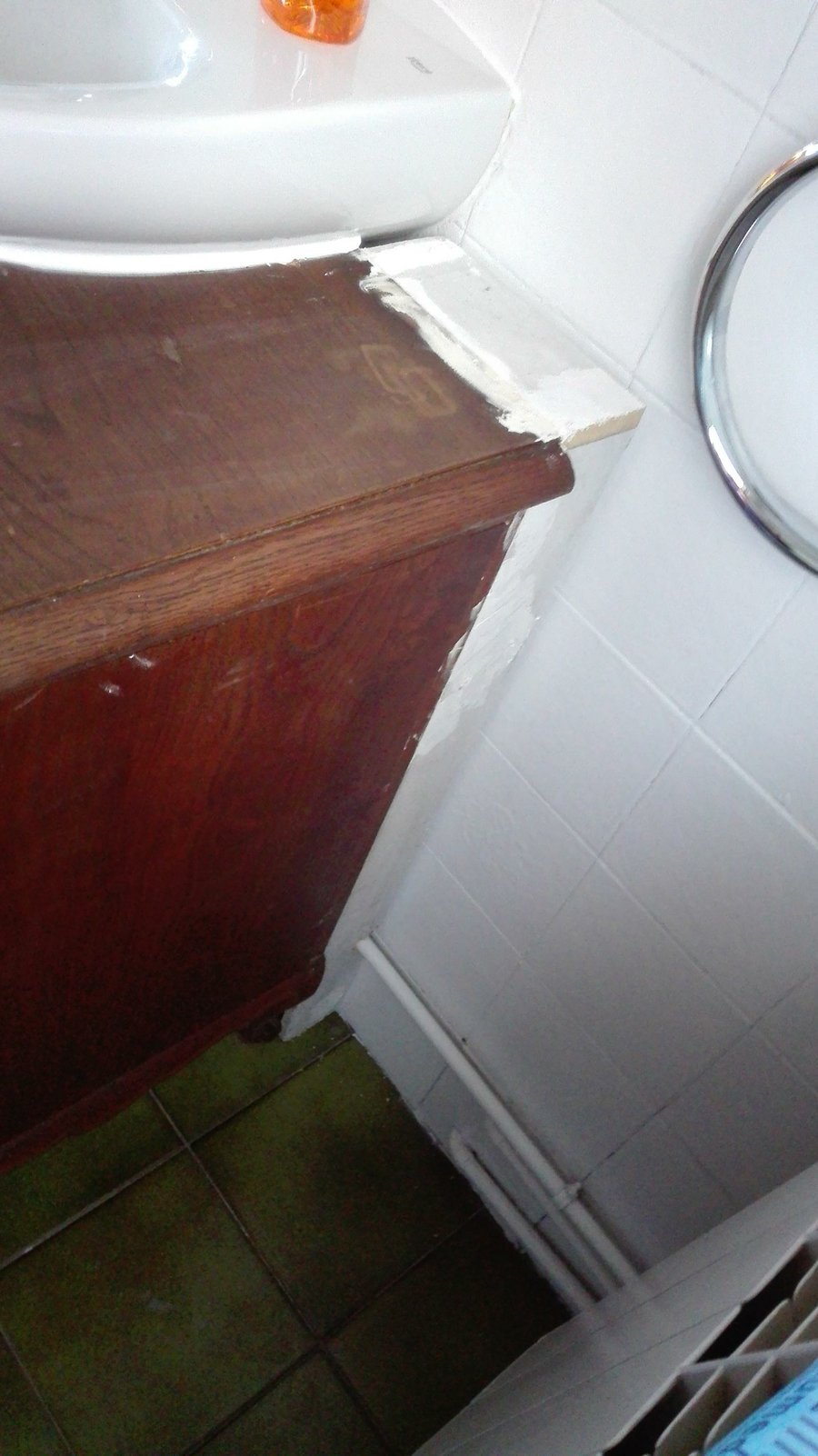Como el lavamanos era muy grande y no quería que sobresaliese del mueble le hice unos retoques con tablas de palet para que no quedará separado de la pared.