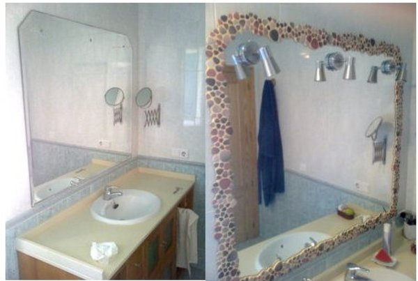 Corto las molduras para el espejo en inglete de 45º, se encolan y despues se pega el espejo.