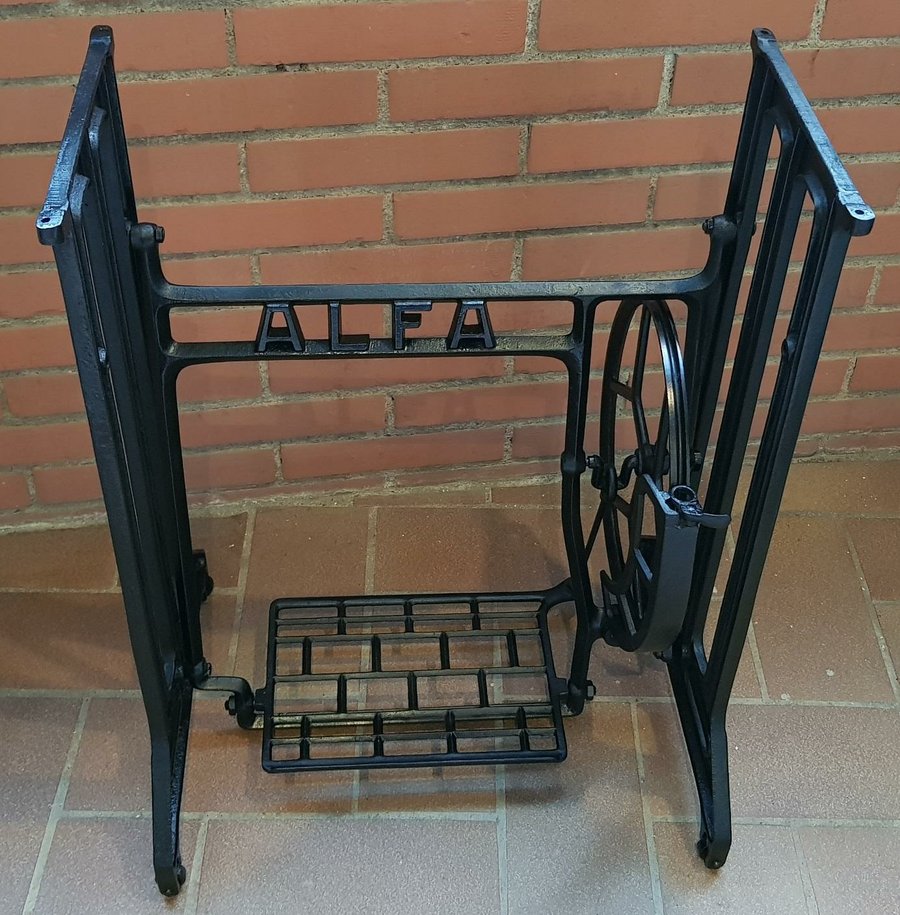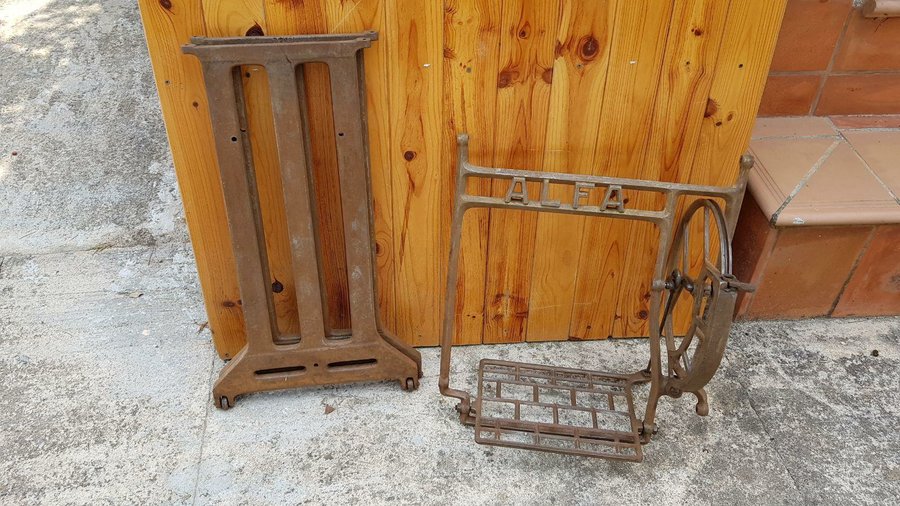 Lo primero de todo es encontrar unas patas de máquina de coser antigua, aunque no tenga tablero ni máquina de coser, ya que para éste DIY no lo necesitamos. Si tienes la suerte de ya disponer de una, ¡ya tienes medio trabajo conseguido! No siempre es fácil encontrar una a un precio razonable, muchos las ponen a precios desorbitados para el estado en que están (por 100€ o más…). En mi caso la compré por Wallapop por 30€ (Singer y Alfa son las que más encontré), a un precio bueno a mi parecer para el estado en el que estaba. También he visto por alguna feria de antigüedades que las venden. Yo pregunté en una, y sin poner mucho énfasis me la dejaban por 50€ en un estado similar a la que conseguí. Aquí tenéis mi adquisición: