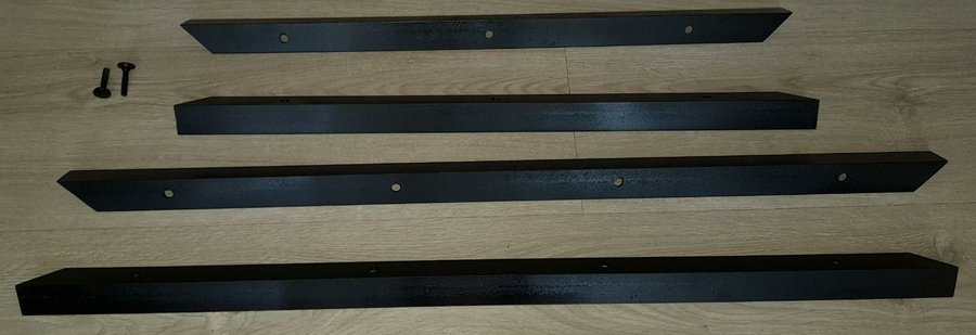 Una vez pintado, ya se puede presentar el perfil de acero en el tablero, marcar y taladrar los agujeros en la madera y, por último, atornillarlos con los tornillos de cabeza redonda: