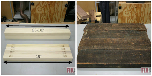 4 listons. Estos serán para la mesa. Si quieres darle un aire distinto, en vez de comprarlas y pintarlas para envejecerlas, puedes coger un par de maderas de un palet. Ahorrarás algo de dinero y será más auténtica.