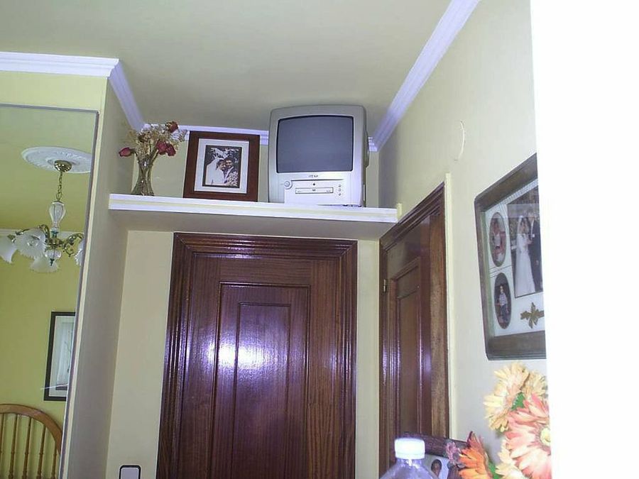 Sobre esa puerta había antes un soporte que Kaximar odiaba a muerte, “porque me daba la impresión de estar en el hospital”. De modo que rápidamente tomó cartas en el asunto, y decidió sustituirlo por una balda de yeso laminado. ¡Éxito completo!