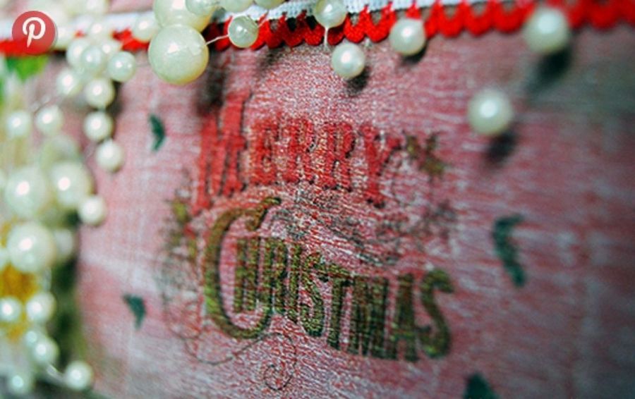 El tercer ejemplo de decoupage también nos lo traeInventandoBaldo. Se trata de un cartel navideño que se ha hecho reciclando un palet. Para ello ha utilizado un trozo de un palet, unas servilletas, un transfer y una puntilla. También nos enseña a hacer un barrido de color o pincel seco.