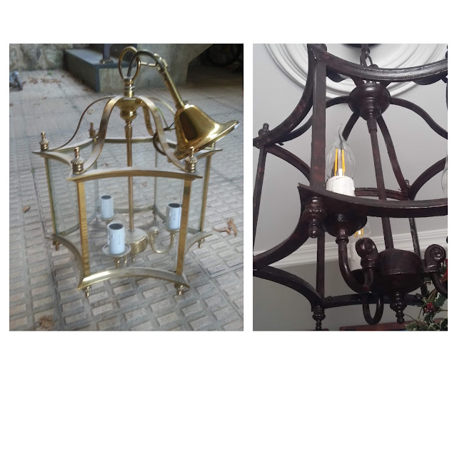 - Debes pintar la lámpara de color negro y cambiar las bombillas que tiene en forma de vela por unos focos pequeños de un bajo consumo.