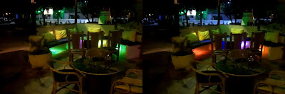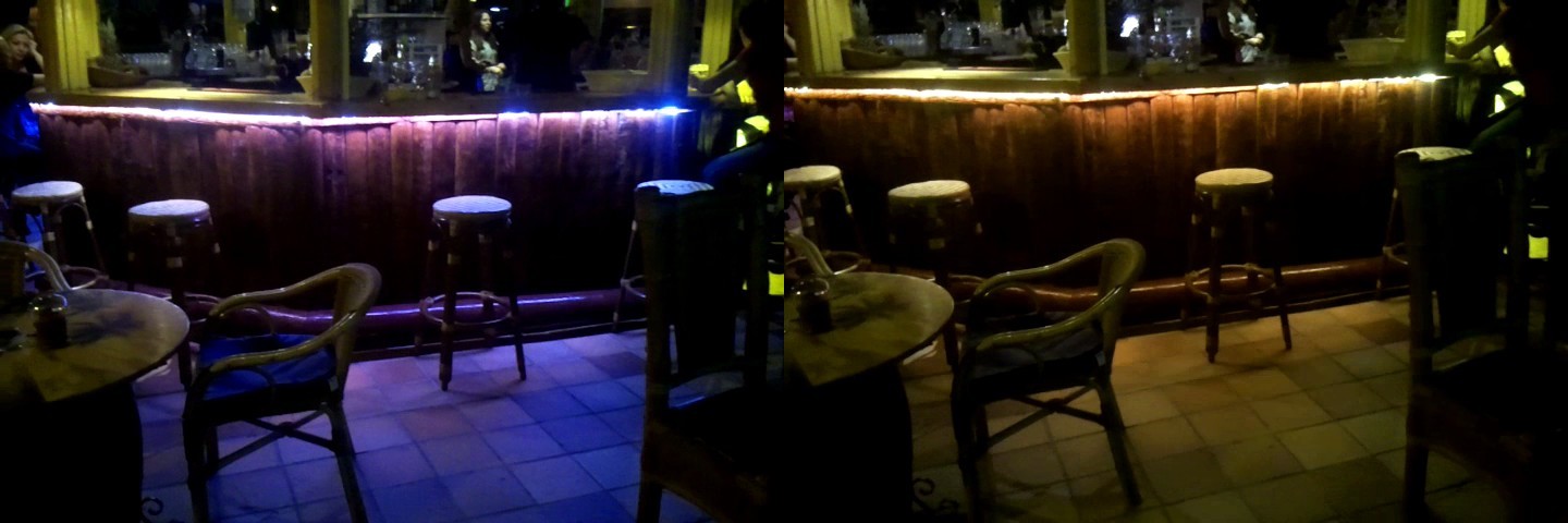 Y por último, para resaltar las palmeras decorativas del local, utilicé focos led multicolores que también se van alternando con mando a distancia. Como véis el resultado no dejó indiferente a nadie.