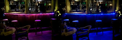 Para los reservados, que consisten en bancos acolchados en semicírculo, utilicé bombillas led multicolores que se van alternando, también con mando a distancia.