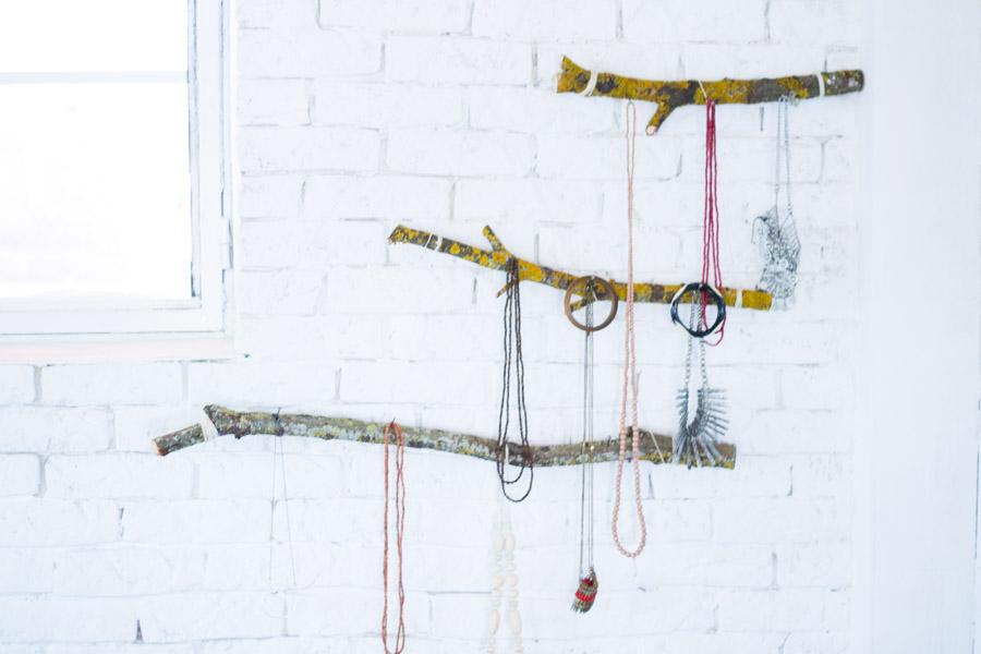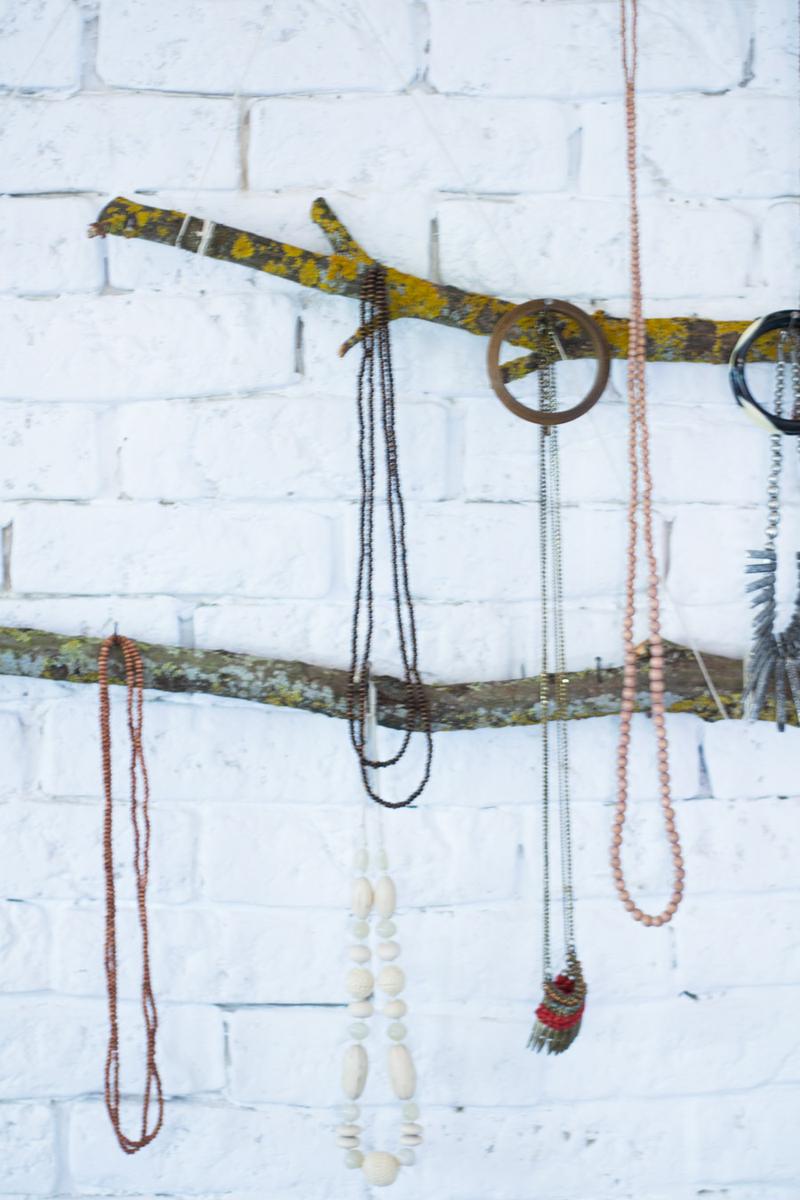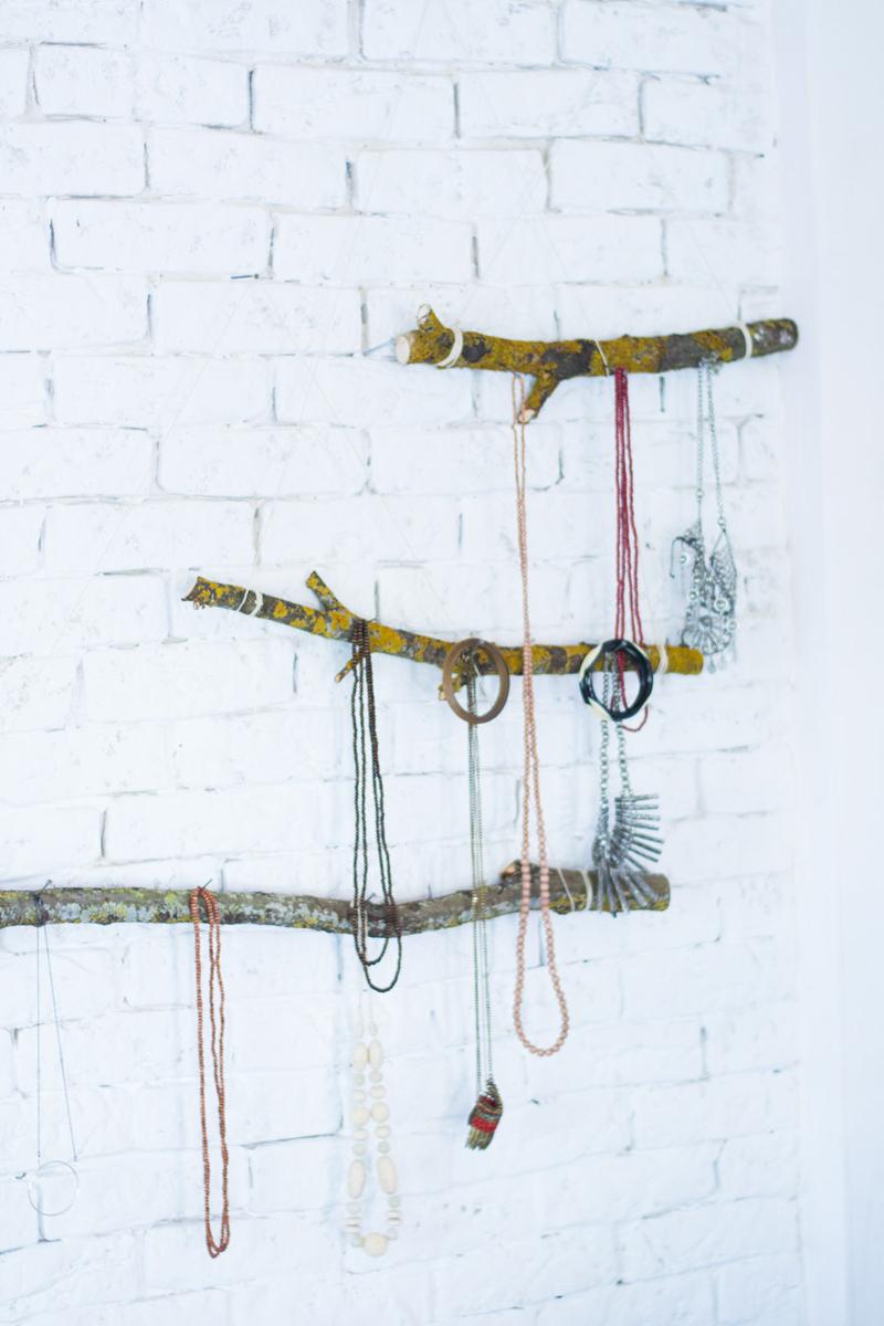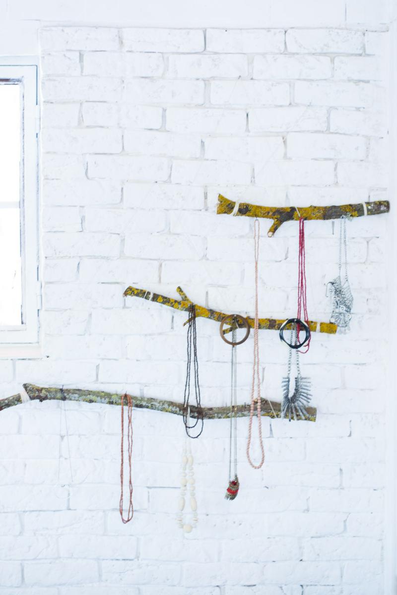 En este caso, unas simples ramas y unas puntas, hacen unos organizadores para joyas con un toque rústico.