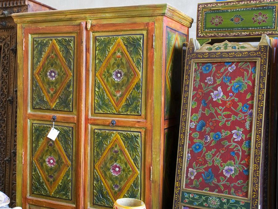 Finalizamos el paseo con un adorno muy típico, los relieves coloreados en vivos tonos. Suelen decorarse de esa forma los armarios y las alacenas.