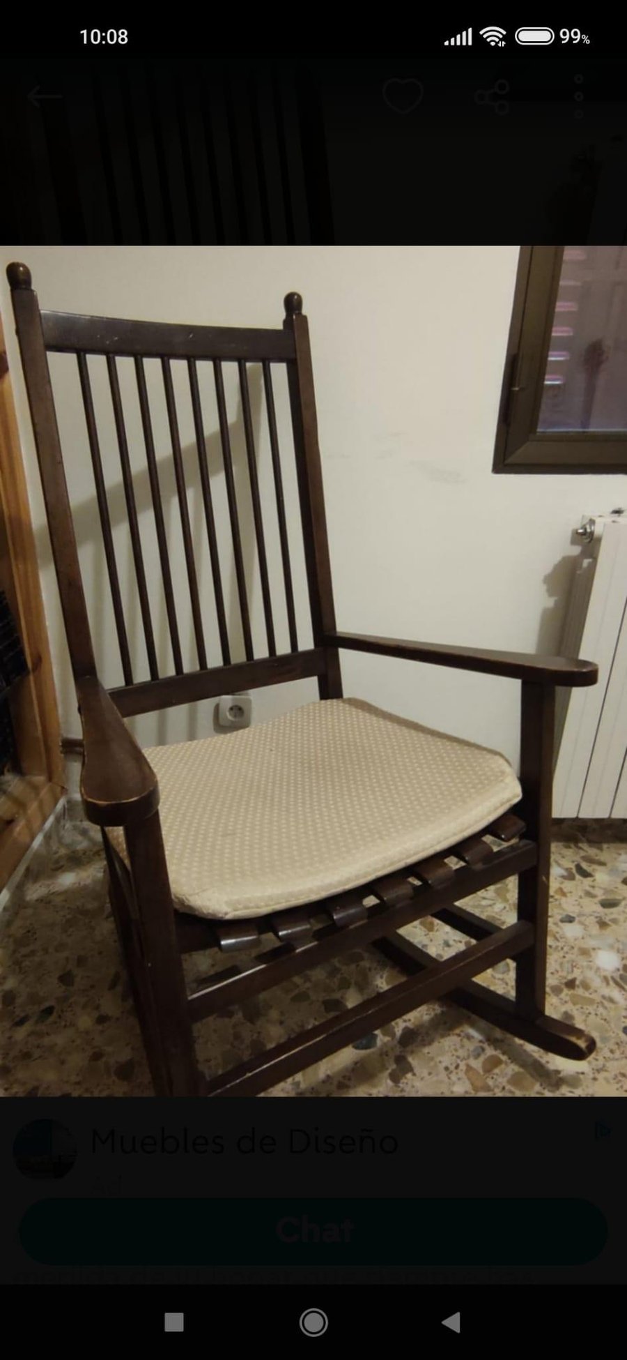 Una vieja mecedora con un barniz feo convertida en nueva, decapada y lijada y barnizada al agua, con un pequeño estarcido con pasta para las tardes de siesta o los mimos a tu bebé. Con cojines nuevos y personalizados.