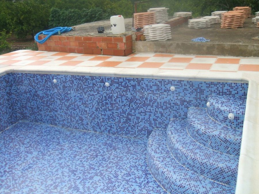 Las piscinas de hormigón necesitan revestimiento. Los azulejos y la pintura son acabados poco recomendables, por razones diversas. La opción más ventajosa con diferencia es el gresite: ofrece la estética limpia y luminosa que todos asociamos con las piscinas, puede seguir tramos curvos, y necesita muy poco mantenimiento al no cobijar algas y microorganismos.