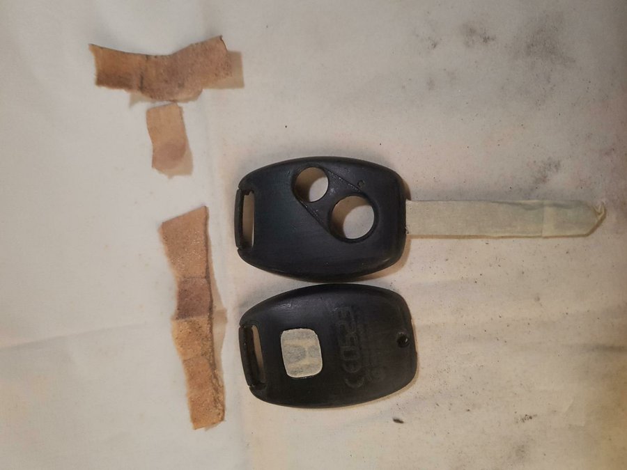 Comencé retirando la carcasa y sacando el chip, la pila y los botones. Encinté el espadín y la pegatina del logo con cinta carrocero para no pintarlo y comencé a lijar con lija fina.