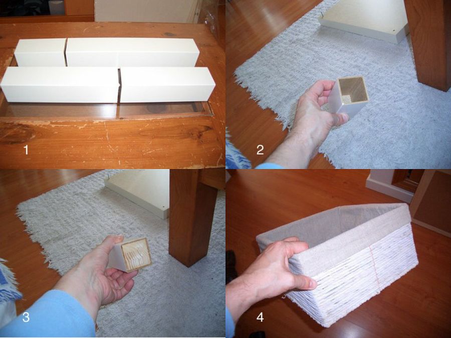 Nuestro amigo forra la cesta, divide el interior creando compartimentos, y elige unos decorativos tiradores.