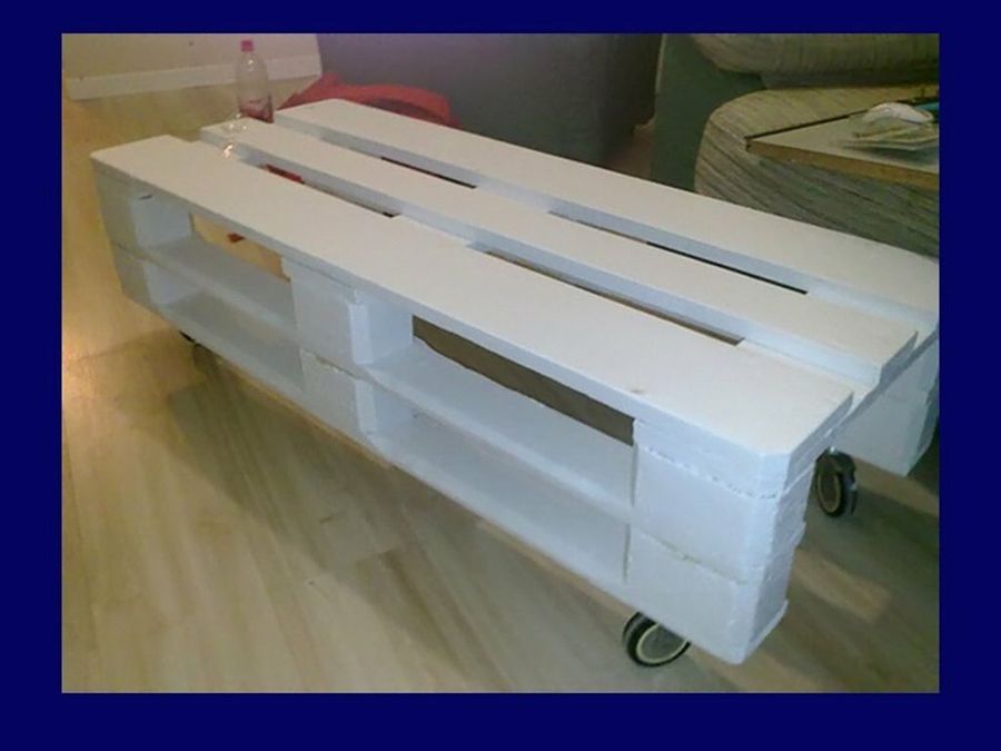 En el diseño de nuestro lector Mmartingarcia apreciamos las dos pautas más habituales en este tipo de mesa de palets baja: montar dos palets y colocar ruedas. Respecto al acabado, el artista eligió pintarlo de blanco, dándole un aire 'shabby' que sintoniza muy bien en su salón.