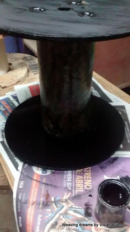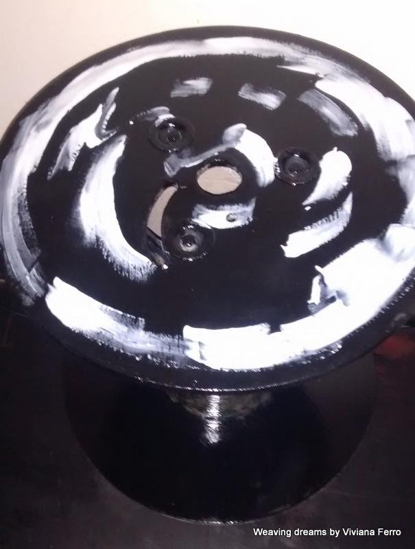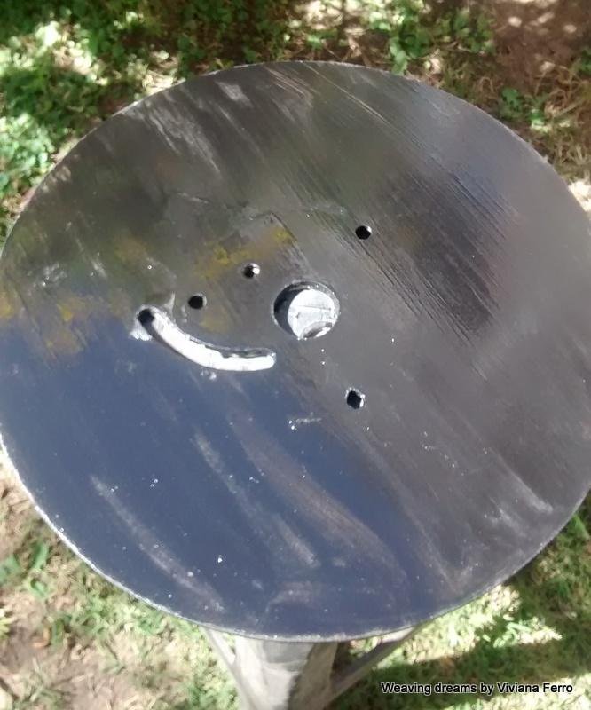 Corté un círculo de fibrofácil y lo pinté con pintura sintética negra luego de haber lijado bien superficies y bordes.