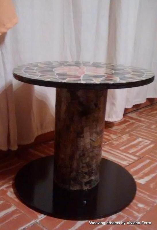 Lo primero que hice fue desarmarlo para ir trabajando sus partes por separado y cortar un círculo de fibrofácil para hacer la tapa de la mesa. No me gustaba que se vieran los orificios.