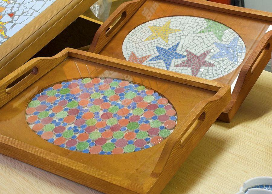 Y por último, os invitamos a gozar del buen tiempo al aire libre, recortando azulejos con los alicates para obtener coloridos puzzles que adornarán cajas y bandejas.