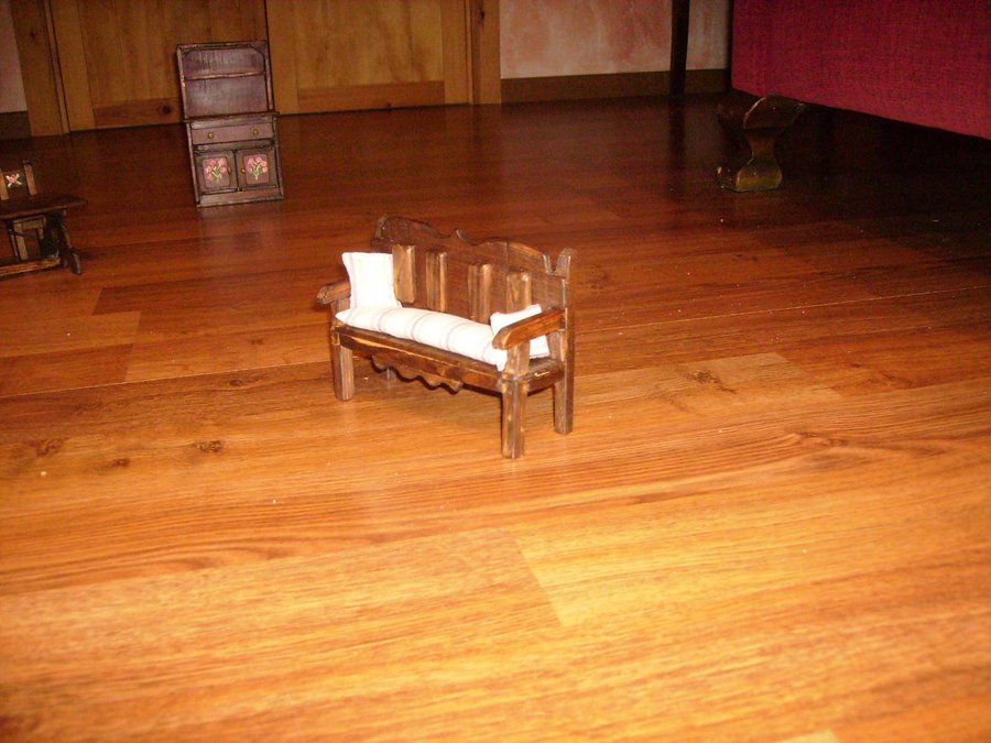 El escaño de madera. Los cojines es lo único que no hice yo.