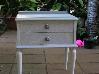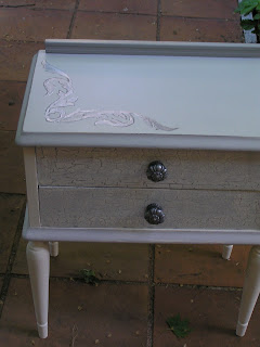 Como no me gustaba como estaba quedando cambié de idea y le pinté el sobre de un gris muy claro y los cajones de otro más oscuro para después craquelar en blanco