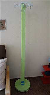 Esta vez os traigo un sencillo perchero que he personalizado. Ya... no es uno reutilizado... Me habría gustado, pero no tenía nada disponible que encajase en las medidas. Así que, para responder al encargo de un amigo que va a cambiar algunas cosas en una habitación de casa, compré uno sencillo, color madera clara, y a pintar!