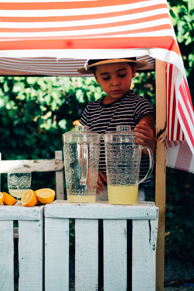 Este verano hicimos un puesto de helados y este puesto de limonada para que Lucas jugara. Ya os enseñé como hicimos un año también un supermercado infantil con pocos materiales.