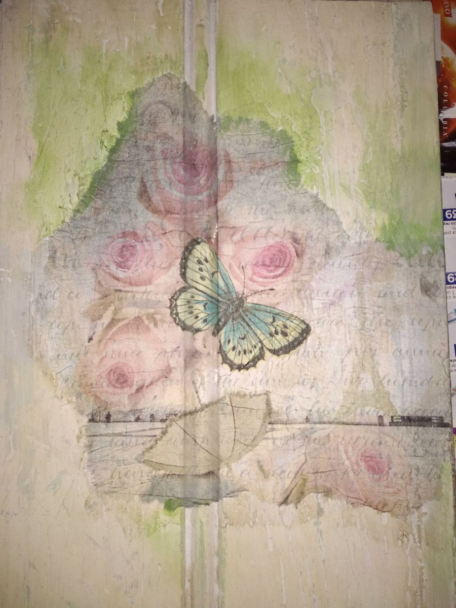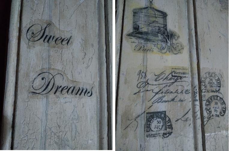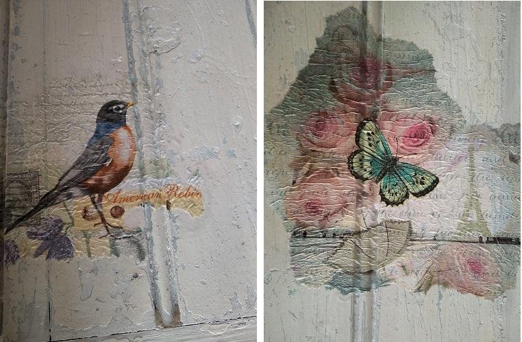 Paso 2 - Imaginé una idea global del proyecto y elegí varios motivos para incorporarlos: servilleta con mariposa, otra con un pajarito, una frase "Sweet Dreams", una lámina vintage en blanco y negro.