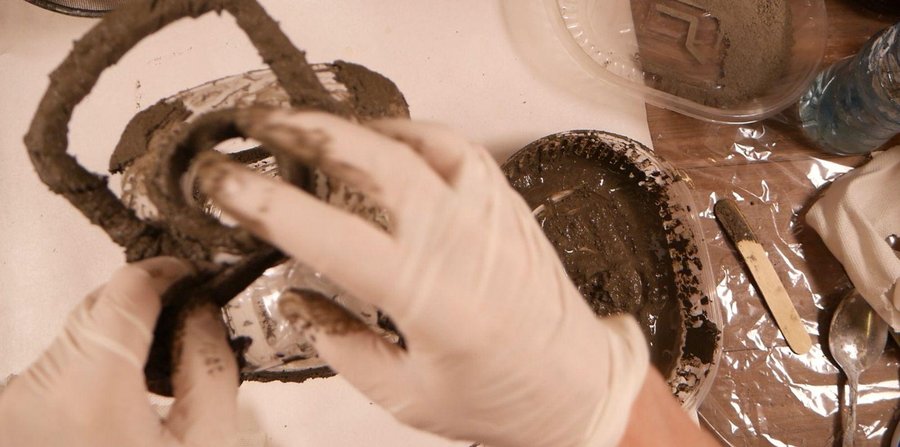A este cemento le fui agregando agua hasta obtener una pasta para poder impregnar mis telas.