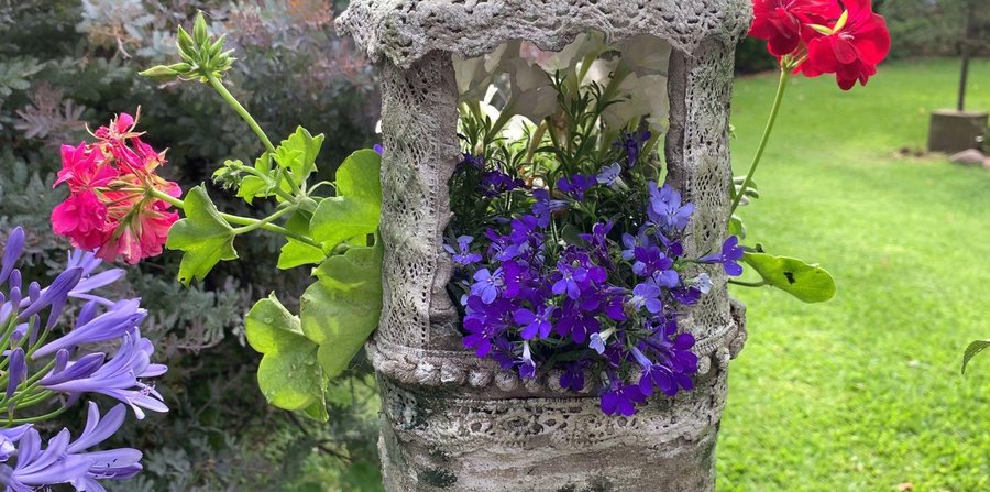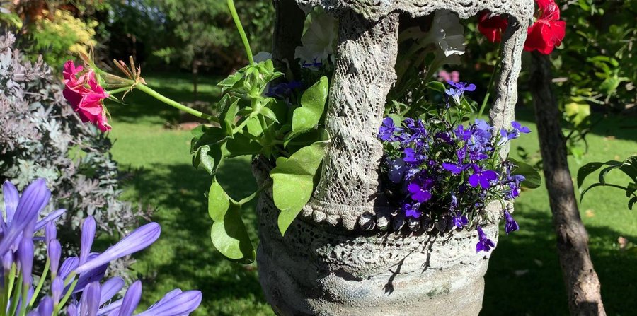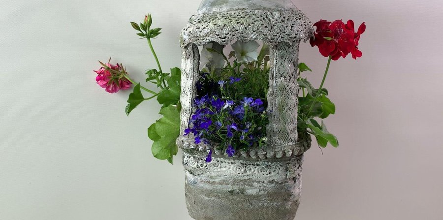Al ser colgante es ideal para flores o plantas que sobresalgan de él y caigan.